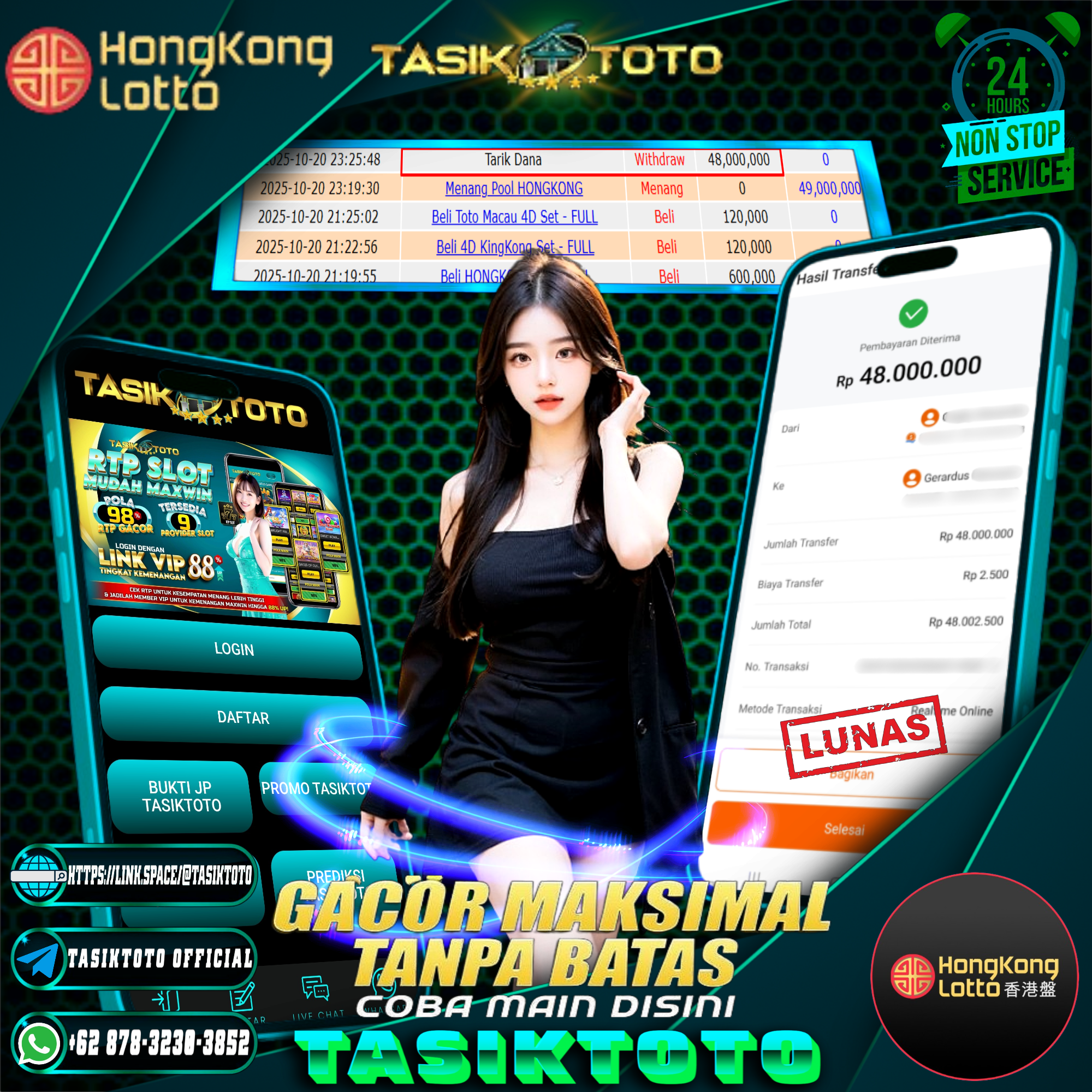 Selamat kepada User Id a*** Telah berhasil mendapatkan kemenangan besar pada permainan TOGEL HONGKONG LOTTO Dengan kemenangan Sebesar Rp. 48,000,000 ,- Setelah mengisi formulir withdraw dengan kurung waktu hanya 5 – 10 menit pihak tasiktoto sudah melakukan transfer kepada pemilik User Id a***