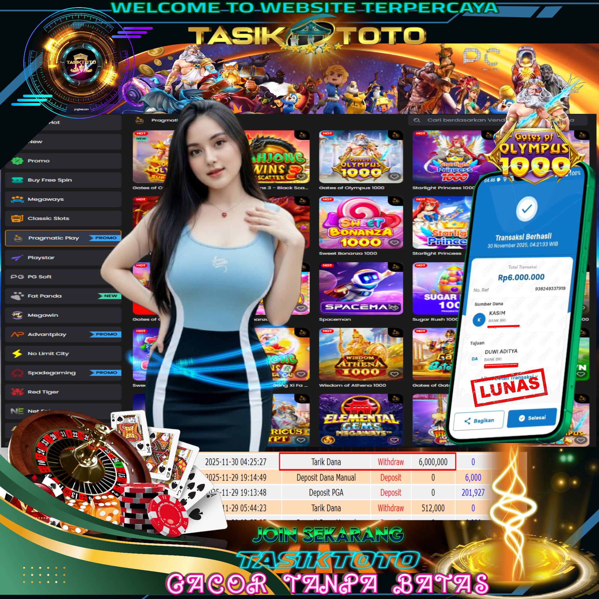 JACKPOT TASIKTOTO Gates Of Olympus 1000 Rp. 6,000,000,- LUNAS