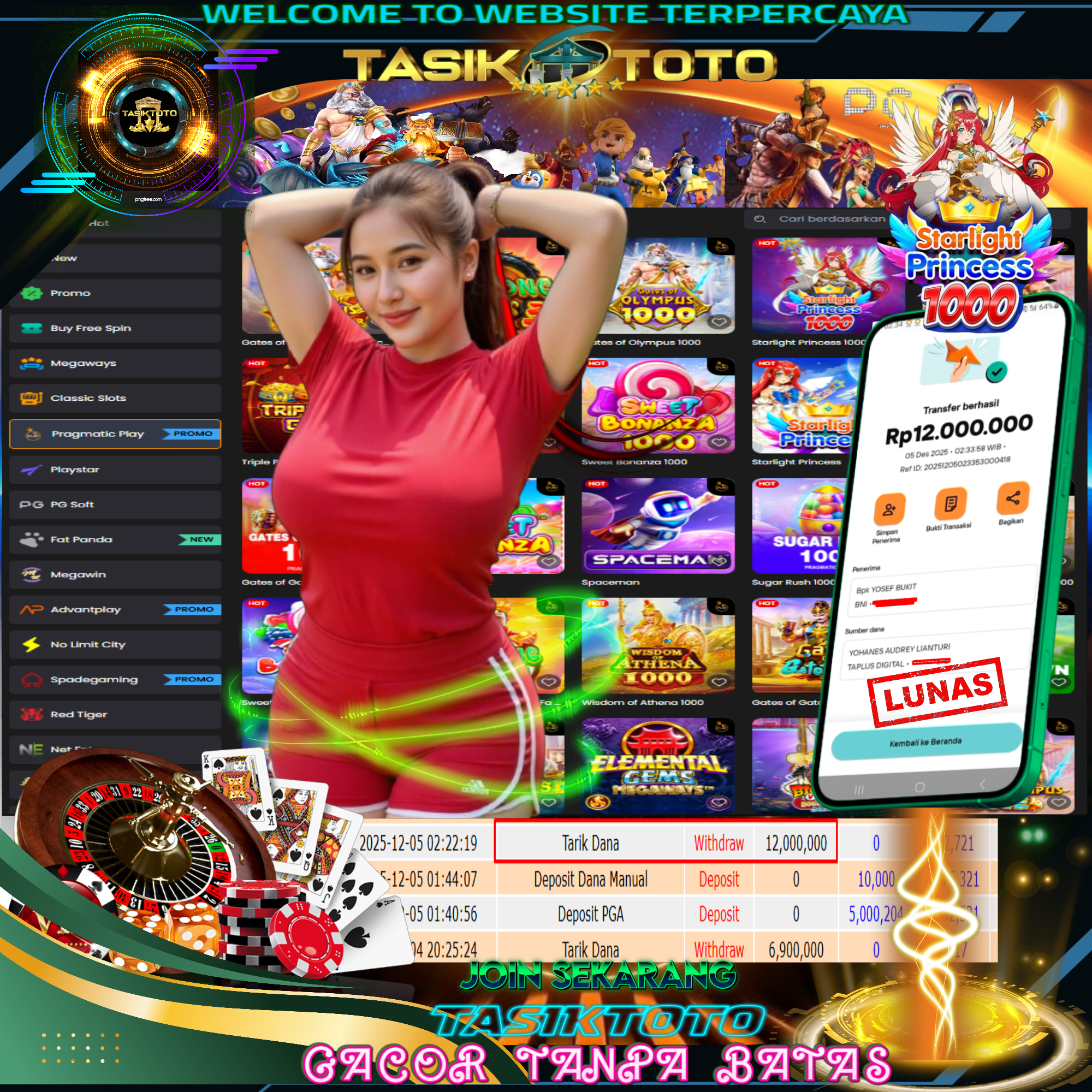 JACKPOT TASIKTOTO Starlight Princess 1000 Rp. 12,000,000,- LUNAS