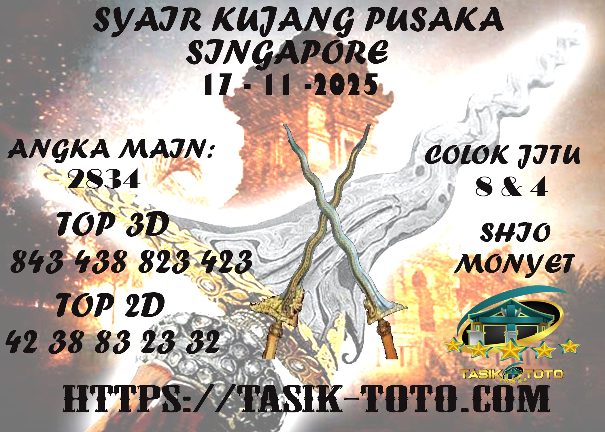 Prediksi TasikToto hari ini berpatisipasi untuk menyebarkan info syair togel singapore akurat untuk bettor togelers. Pada umumnya syair togel ini memiliki muatan rangkuman prediksi shio atau ramalan shio yang tujuannya benar-benar berguna bagi beberapa prediktor dalam mendapati angka keluaran dari ramalan angka togel ini.