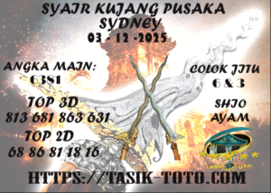 Buat itu disini kita siapkan layanan syair togel sydney resmi buat kamu yang ingin lebih mencari prediksi syair togel sdy saat ini. Maka tidak usah takut, karena Prediksi TasikToto akan memberikan kalian bocoran syair togel hari ini yang jitu dan bisa dijadikan untuk membuat prediksi ramalan togel sdy setiap harinya.