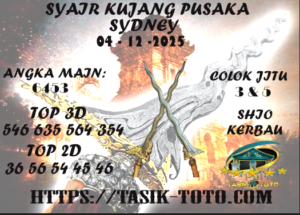 Buat itu disini kita siapkan layanan syair togel sydney resmi buat kamu yang ingin lebih mencari prediksi syair togel sdy saat ini. Maka tidak usah takut, karena Prediksi TasikToto akan memberikan kalian bocoran syair togel hari ini yang jitu dan bisa dijadikan untuk membuat prediksi ramalan togel sdy setiap harinya.