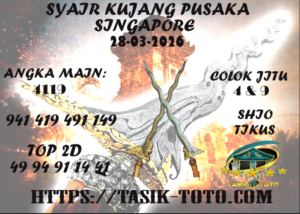 Prediksi TasikToto hari ini berpatisipasi untuk menyebarkan info syair togel singapore akurat untuk bettor togelers. Pada umumnya syair togel ini memiliki muatan rangkuman prediksi shio atau ramalan shio yang tujuannya benar-benar berguna bagi beberapa prediktor dalam mendapati angka keluaran dari ramalan angka togel ini.