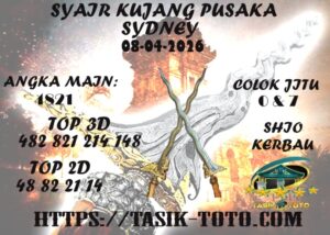 Buat itu disini kita siapkan layanan syair togel sydney resmi buat kamu yang ingin lebih mencari prediksi syair togel sdy saat ini. Maka tidak usah takut, karena Prediksi TasikToto akan memberikan kalian bocoran syair togel hari ini yang jitu dan bisa dijadikan untuk membuat prediksi ramalan togel sdy setiap harinya.