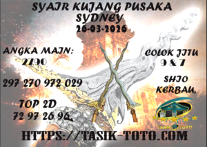 Buat itu disini kita siapkan layanan syair togel sydney resmi buat kamu yang ingin lebih mencari prediksi syair togel sdy saat ini. Maka tidak usah takut, karena Prediksi TasikToto akan memberikan kalian bocoran syair togel hari ini yang jitu dan bisa dijadikan untuk membuat prediksi ramalan togel sdy setiap harinya.